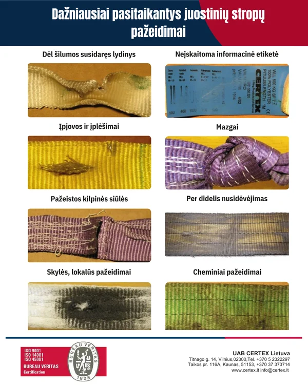 Kokie yra tekstilinių stropų patikros kriterijai?